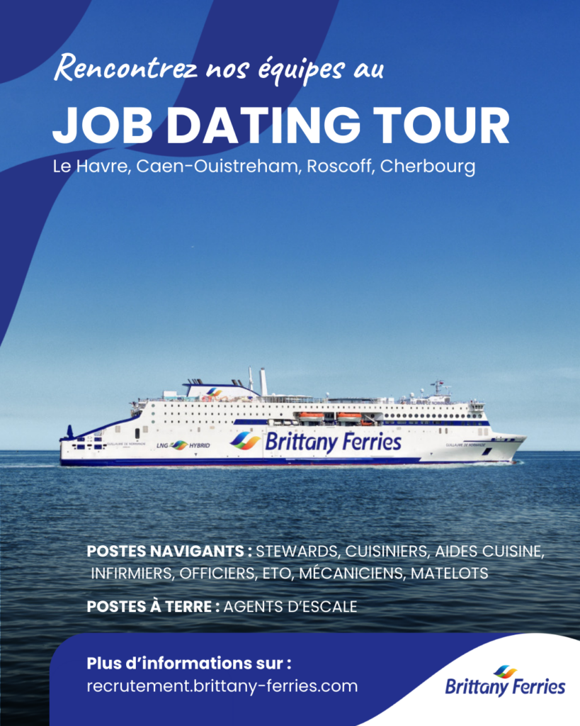 Cette année, Brittany Ferries a décidé de créer des moments entre vous et nous : des temps d’échanges conviviaux où vous, candidats, pourraient en apprendre plus sur notre Compagnie et découvrir toutes nos opportunités ! A bord, comme à terre, ce sont plus de 200 métiers qui existent au sein de Brittany Ferries. Nombreux sont nos collègues qui ont des parcours atypiques, entre mobilité transversale interne ou même passage d’un métier à bord à un métier à terre. Et si le prochain était vous ?